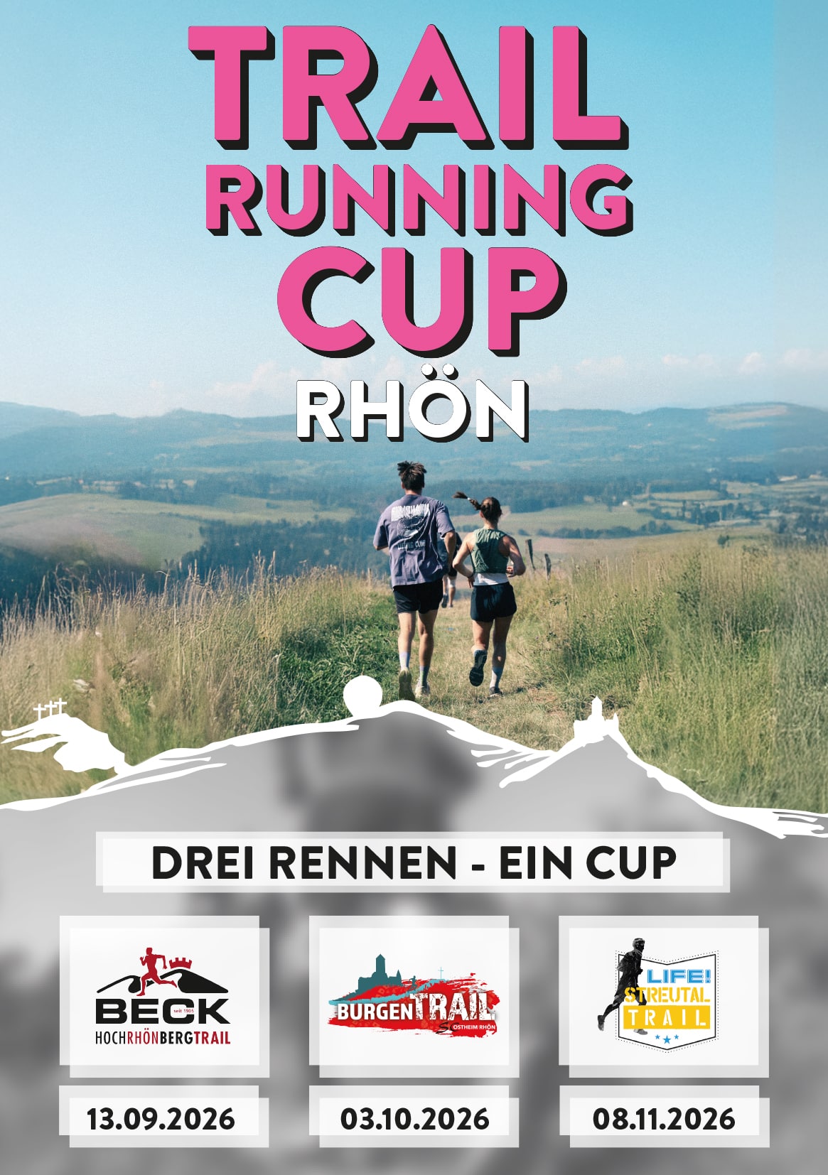 Wie in den Vorjahren gibt es auch 2026 wieder den Trailrunning Cup Rhön, der sich aus drei fantastischen Veranstaltungen zusammensetzt: dem Hochrhönbergtrail in Hilders am 13. September, dem Burgentrail in Ostheim am 3. Oktober und dem Streutaltrail in Mittelstreu am 8. November. Jede Veranstaltung bietet eine sportliche Challenge in traumhafter Umgebung mit einzigartigen Trails und ordentlich Höhenmetern.